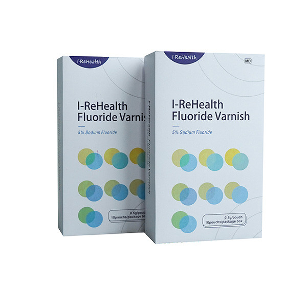 ●I-ReHealth de fluoridevernis is een 5%-natuurlijk op hars-gebaseerd materiaal van het natriumfluoride dat tandbederf tijdens orthodontie en reparatiedemineralisatie kan verhinderen.